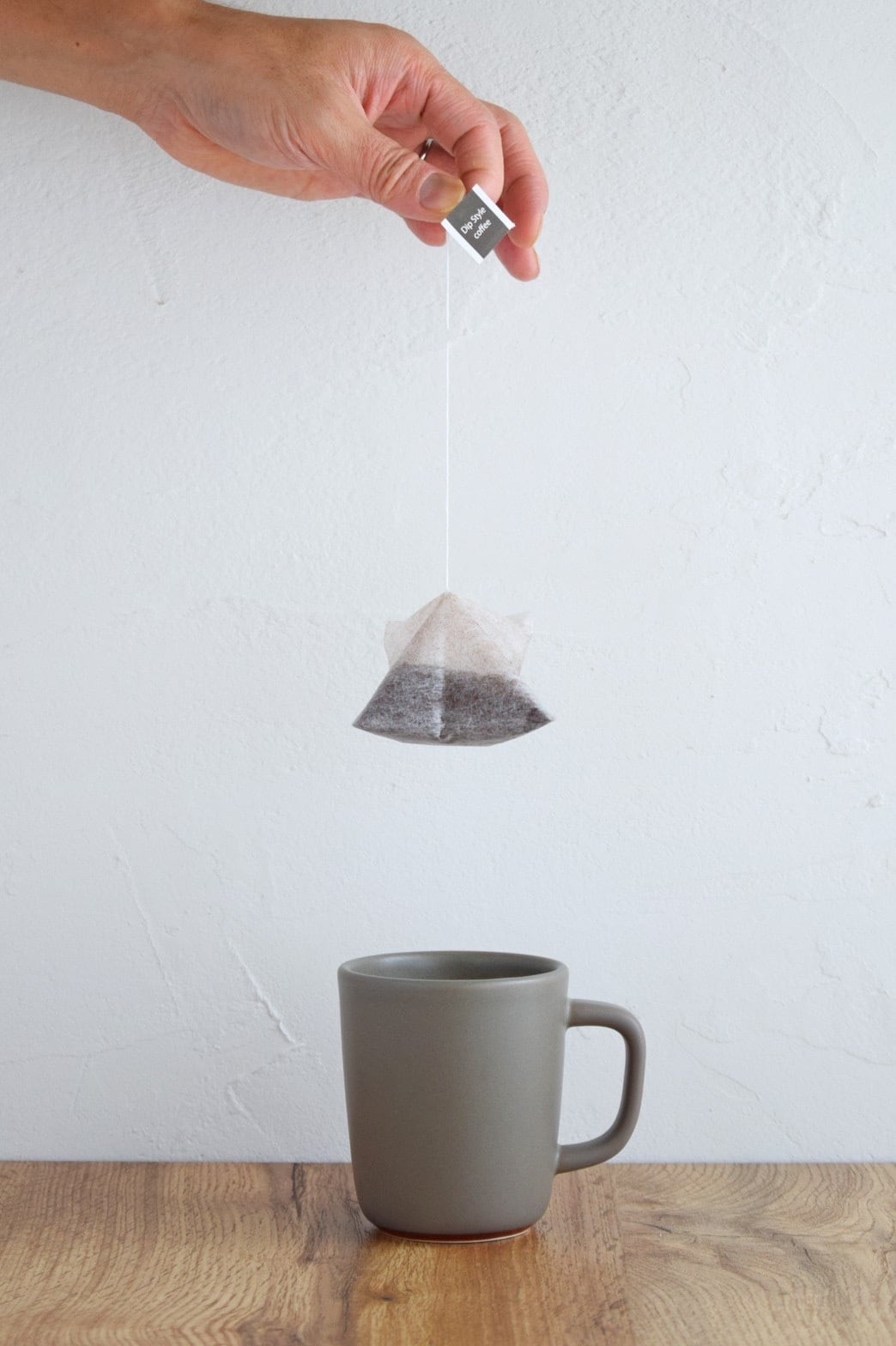 90℃前後のお湯200gを数回に分けて注ぎ、3〜4待ちます。好みの濃さになったらバッグを取り出して出来上がりです。
